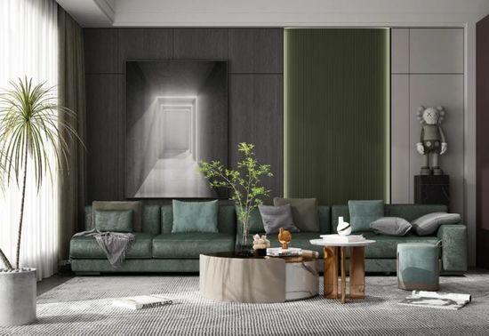 建议直接换上颜色鲜艳或造型特殊的沙发,客厅的主视觉就会被改变。