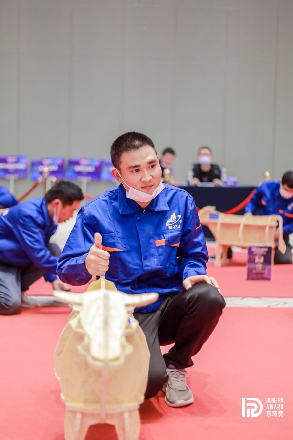 每位参赛选手如“庖丁解牛”般对板材了如指掌,有条不紊把握着自己的节奏。多位选手接受采访说出了本次比赛的难点,表示:“有更充足时间以及专业技术支持才能做得更加完美。”作为首先收官的比赛环节,一头头由莫干山定制板材拼接而成的木牛依次排列,仿佛也成为连接莫干山板材发展过去与未来的交点,诉说着莫干山人二十多年的奋斗与拼搏,直到成就了今天——莫干山成为国内规模强大且具有很强影响力的环保型装饰材料生产企业之一,并共同昂首未来。