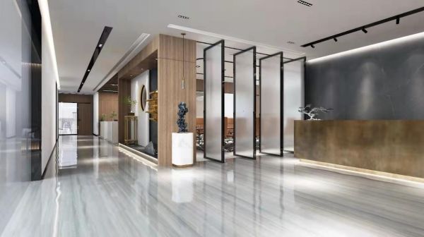 入门大厅采用木质材料和玉白磨砂玻璃为主,两旁原生木色和黑质边框的搭配。减去了繁琐的设计,简约也不失雅致。跟随木质纹理的延伸可以感受到增加的视觉层次。厅内整体的流线环环相扣,逐步放大,引人不经遐想地走入空间。