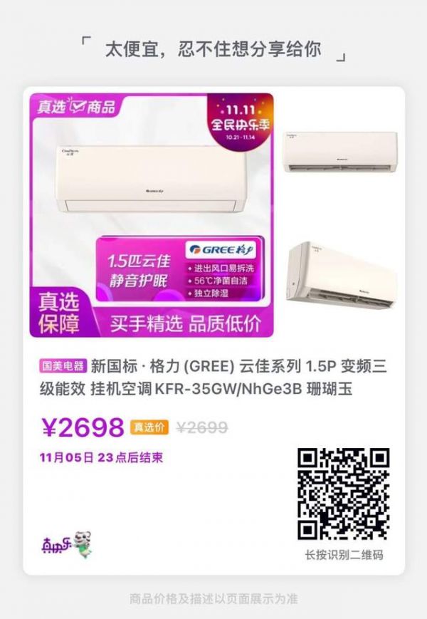双11期间,国美电器就为大家精心准备了一大批高能效等级的优质空调。以新三级能效格力云佳变频冷暖空调为例,它不仅能快速制冷暖,而且能通过温湿度平衡控制减少耗电量,绿色节能更省电,为低碳生活打call。更重要的是,国美电器在双11“全民快乐季”活动联合格力开启了品牌日促销,新能效空调优惠高达千元,可谓是入手这一爆品的最佳时机。