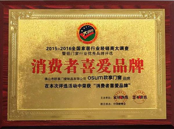 荣誉来自企业硬核实力!欧享门窗荣获“消费者喜爱品牌”
