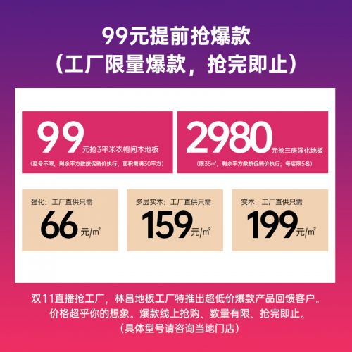 经过这么多年的双十一,不仅拼网速,还要拼手速,满满的套路你是不是已经厌倦了呢?而今年双十一林昌地板慰你心,我们不玩套路,要玩就玩真的!