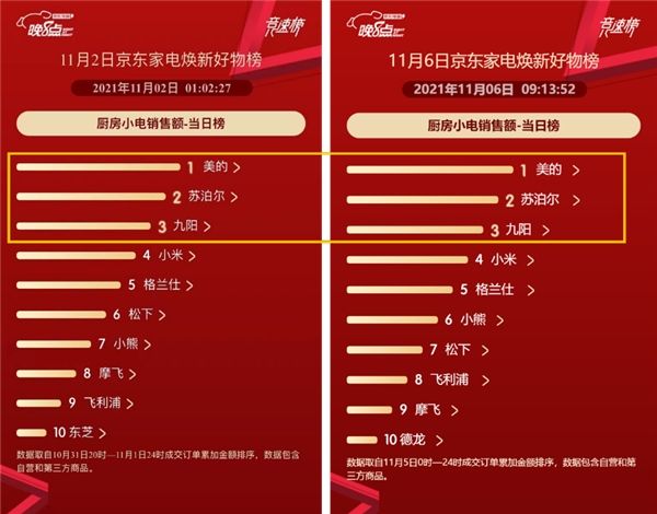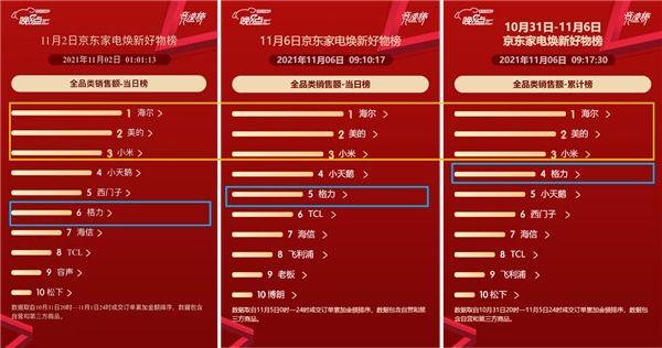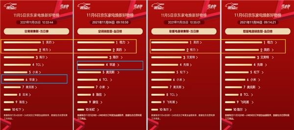 11月5日,京东家电品类日的到来,各品牌又迎来新一轮交锋。在完成了5号一天的鏖战后,各大品牌间的销售排名之争也变得异常激烈。