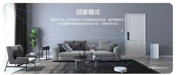 荣耀 VOC智能门锁X6一键连接手机设置回家模式,无论您何时回家,只要一开门,家里的空调、电视、空气净化器等智能设备都会为你自动开启。