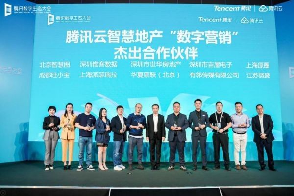 同时峰会现场,吉屋荣获腾讯云“数字营销杰出合作伙伴”,吉屋COO陈栋上台领奖。
