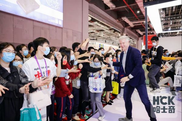 此外,在进博会开展的第一天,HCK哈士奇也为与会者带来了一份意外惊喜——进博会惊现百只哈士奇“巡游”,过百只HCK哈士奇气球穿梭在进博会中,赢得了不少观众的青睐,其也惊现在各个品牌的展位中,吸引了不少参展商的注意。借此,HKC哈士奇轻松成为当天当之无愧的人气王。