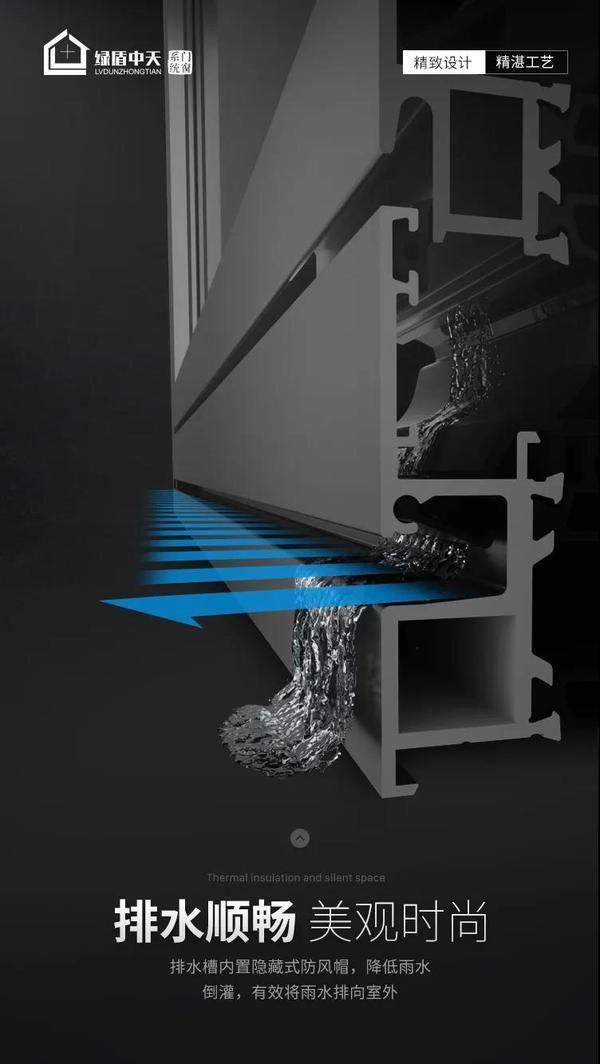 屋外骤雨四起,这扇窗就是你怡然自得的底气,LD-X76墅宅系统窗水密性能可达6级,水密性是指门窗正常关闭状态时,在风雨同时作用下,阻止雨水渗漏的能力。LD-X76墅宅系统窗独特的隐藏式排水设计,有效将雨水排向室外,排水槽内置隐藏式防风帽,防止风哨声和雨水倒灌。