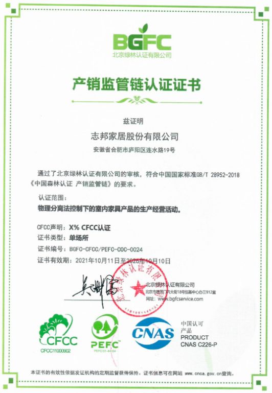 志邦家居率先通过两项认证,代表了志邦家居达到了“林产品”产销标准的先进水平以及公司产品在全生命过程中,符合环境保护要求,对生态环境和人体健康无害。从侧面说明了志邦家居产品的绿色环保属性在定制家居行业内处于领先地位。