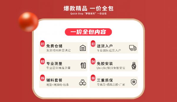 得高比利时进口Quick-Step艺术木地板梦想系列紧随潮流,八款花色各具时尚美感,其纹理胜似实木,且拥有优异的耐刮擦、防磨损性能,适用于地热环境,达芬兰M1级环保。方砖系列则展现了石材的天然特性,赋予强化地板淳朴的视觉效果,赋予居室别样美感。