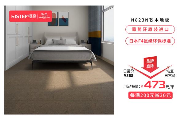得高葡萄牙软木地板更为地面选材带来新选择,天然环保的软木地板拥有吸音降噪、触感温暖及行走舒适的特性,十分适合有老人、小孩的家庭铺装。