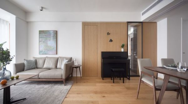 109㎡3房2厅,现代简约风装修,全屋白色与浅色原木装饰,很耐看