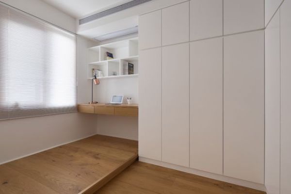 书房也是白色与浅色原木装饰的,温馨又时尚