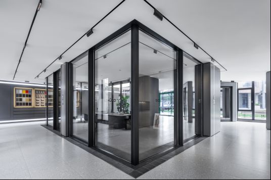 在入门区域选用了稳定性极高的旭格AD UP 90门系统,紧接而来的便是旭格MFU 2.0幕墙系统产品。MFU 2.0主要在国内研发,并可无缝整合旭格AES 80 TC推拉系统以及旭格AWS 114 SG窗系统,将功能与美学完美结合。MFU 2.0幕墙系统突出旭格在本土化发展上强调因地制宜的设计理念。在展厅内部重点展示了经典的推拉系统ASS 39 PD.NI和ASS 50 HW。值得关注的是,ASS 50 HW是为本土项目定制而成的产品,尤其是针对不同地域气候条件,具备更高水密性。此外,还包括最前沿的几款推拉系统产品,如旭格ASE 70 PD.ME和ASE 80.HI,90°转角的旭格ASS 77 PD.HI全景推拉系统。