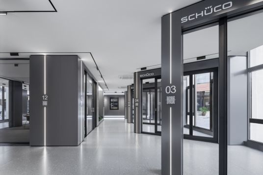 在窗系统方面,特别挑选了经典的AWS 65、AWS 70.HI以及 AWS 75 系列产品。其中AW 65 BL外开窗系列产品和AW CT 67 BL首次亮相体验中心,并且也是创新式本土化设计产品。AW CT 67 BL窗系统在设计研发中充分考虑到中国门窗行业的标准要求。经过对结构深度、隔热性能以及可视面宽等因素的考量,实现了最佳的性价比。此外,凭借AWS 75 PD.SI全景设计窗系统,旭格首次提供内外可视面最为纤细的开启扇,同时发挥良好的隔热性能,满足建筑要求。在满足现代建筑外立面能效的同时,又实现了外观上的基本需求。此外,带DCS(门控)触屏显示器的旭格ADS 90.SI SimplySmart设计版,以及旭格ADS 65 HD系列,为简易操作、安防与舒适设定了市场新标准,备受来访者的青睐。展厅外墙均由旭格幕墙产品打造而成,包括纤细的旭格FWS 35 PD.HI全景设计幕墙系统、FWS 60幕墙系统。