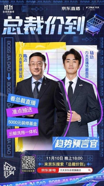 其实一进入11月,就不难发现有一个关键词逐渐呈现大众视野,那就是“京东双十一”,当天,不仅有各种福利、冰点价等优惠打造巅峰盛典,方太还将放出一记前所未有的大招——邀请方太集团副总裁陈浩、方太特邀嘉宾杨玏“价到”京东直播间,来一场阵容华丽、规模空前的厨电直播! 京东家电更是打造了“BOSS价到 狂撒百万京豆”的狂欢节,从圈流量到圈人群,助力总裁C位出圈。“总裁+明星”将会迸发怎样的火花?现场会放出哪些福利?以“总裁+明星”直播带货、品专双微等站内外曝光等多种方式进行有机结合为直播引流,辅以强导购销售进行产品种草,想必定能给消费者带来一场视觉与听觉的完美盛宴。