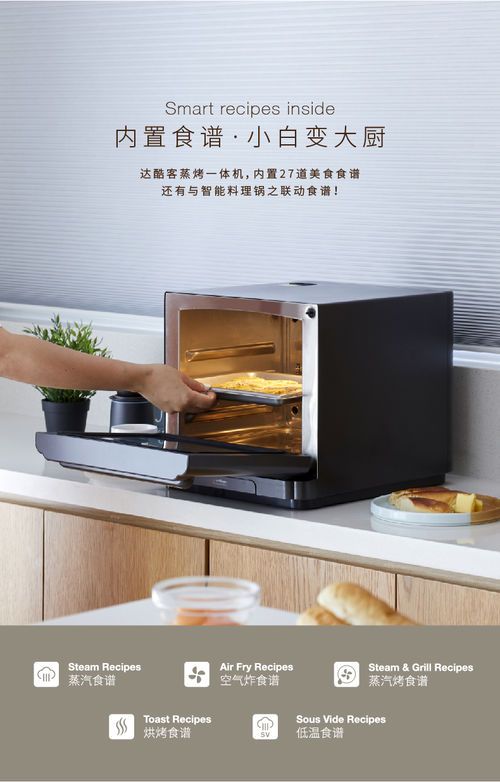 当然“六大”应用快捷模式+27道内置食谱还不是这款达酷客蒸烤一体机DSO200的全部魔力,若能搭配达酷客智能料理锅(Smart?Cooking?Station)一同使用,可以说是,健康美食只有你想不到的,没有它们做不到的。