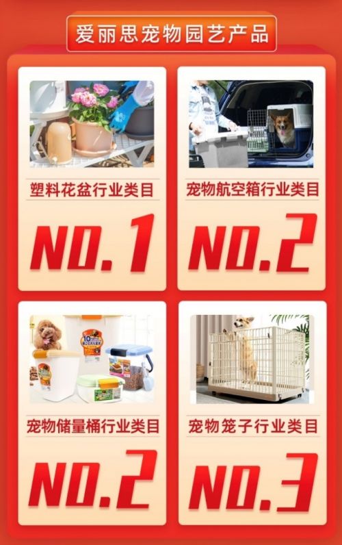 宠物及园艺产品领域,爱丽思也表现出当仁不让的气魄。爱丽思始终将宠物视为家庭中的一位成员,用心为TA们创造舒适的生活环境。爱丽思的宠物航空箱、宠物储粮同、宠物笼具等塑料宠物用品,常年受到消费者认可,口碑足以证明品质。爱丽思的塑料花盆,设计简约,结实耐用,常用于公路两侧的户外绿化,也多用于装点都市庭院,毫无悬念地稳居行业类目榜首。