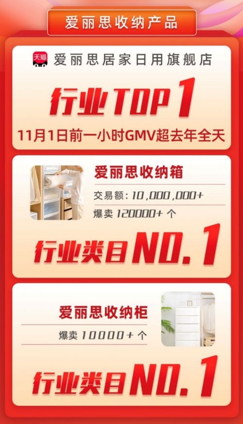 11月1日—3日,2021双十一全球狂欢第一弹迎来首轮捷报。据爱丽思官方数据显示,爱丽思天猫居家日用旗舰店11月1日前一小时GMV超去年全天,位列家居收纳行业榜单之首,而在小家电、宠物园艺用品等类目中,同样表现不俗,多项商品跻身该行业类目前三。全网络平台销售额突破4177万,前年比达188%。