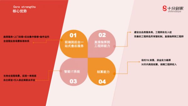 十分到家在广东惠州、四川江油布局2大呼叫中心,拥有300+专业坐席,7✖24H 小时全天侯守护用户来电;建立了完善的备件管理体系,国内下辖四大中心仓,同时各地拥有21个中转仓;交付能力覆盖全国,拥有 5000家服务商,560 家全品类服务商,3000名五星级工程师;已建成满足全屋家居电器工厂级后台服务,集中维修能力幅射全国。
