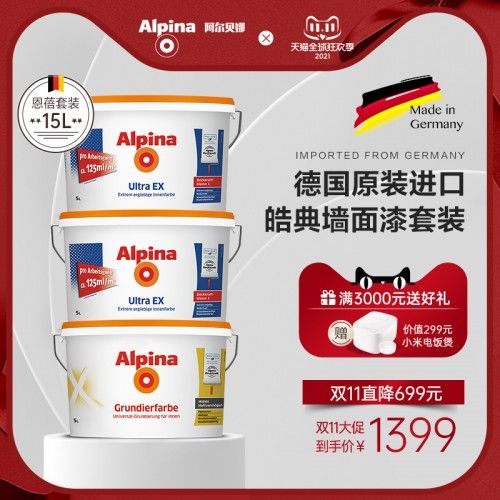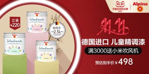 今年,阿尔贝娜将继续征战“双十一”。11月1日-3日,凡是在天猫旗舰店购入阿尔贝娜产品均享受跨店满200-30活动,在1号0-1点付款的消费者送公牛插座1个;加入会员即送滚筒、木刷等工具;全场满3000元送小米吹风机,满6000元送小米4L电饭煲。10月31日-11月3日,凡是在京东旗舰店购入阿尔贝娜产品均享受跨店满200-30活动,全场满2000元送杀菌净化液,满4元送负离子吹风机,满6000元送小米4L电饭煲。双电商平台打响“双十一”第一枪,阿尔贝娜内墙漆同时推出了多款店铺热销组合套装,性价比爆棚,不容错过。