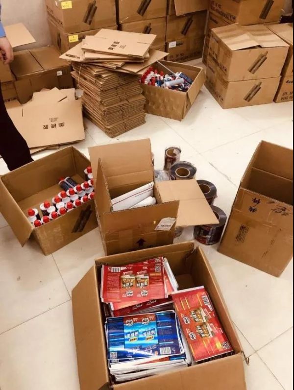 现场查获假冒产品6633组,假冒标贴9700个,假冒防伪标签20448个,生产设备2台,用于作案的电脑手机若干。目前2名嫌疑人已被拘留,案件在进一步调查中。