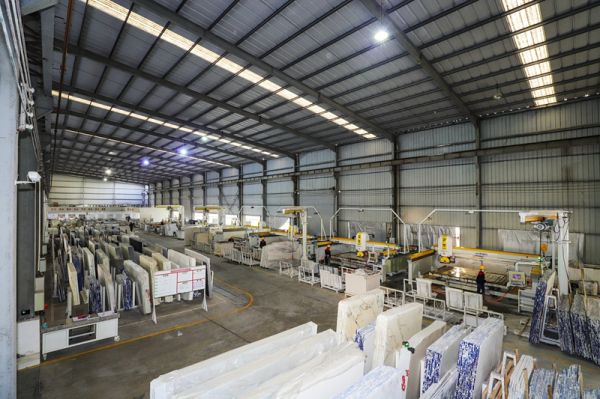 2017年年底,锐丰源大刀阔斧,投入1550万元筹建二厂,引进第一台一体式智能桥切机,专注异型石材制造。投产第一年,产量就实现了165.8%的增长,这也彻底坚定了他践行石材智能制造升级的决心。