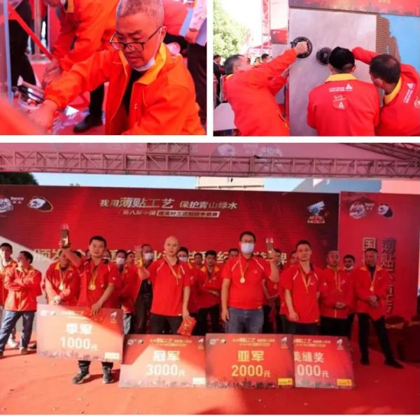 大板团队对抗赛区域,围观市民非常多!讲真,大板又重又大,要完美贴上墙,可是很考功夫的!不仅需要有像德高超大板柔性无尘瓷砖胶这样的好产品,还需要掌握娴熟专业技术的好工匠!