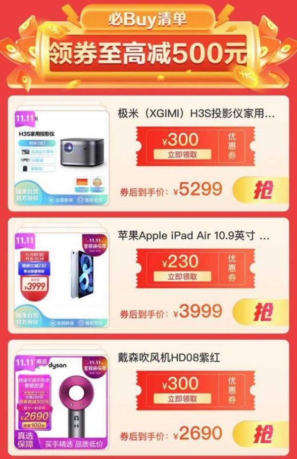 每年双11,懂得薅羊毛的小伙伴都会提前列好采购清单,然后将心水的商品一样不落地统统拿下。考虑到部分患有“选择困难症”的朋友还在纠结买什么,“真快乐”APP贴心地为大家整理了一份必Buy清单。这份清单中包括极米H3S家用投影仪、 iPad Air 10.9英寸、戴森吹风机HD08紫红、索尼电视、松下多门冰箱……一大波真选好货惊喜“价”到,先领券再下单,至高减500元,这招薅羊毛的操作必须学会!