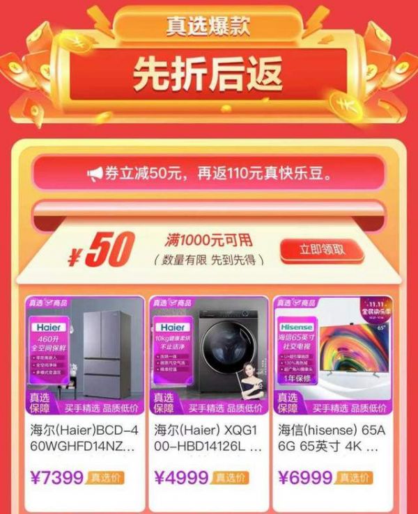 值此双11大促,“真快乐”APP同样为大家准备了诸多真选爆款,它们不仅拥有真选品质,而且还可以享受先折后返的优惠。并且,万千真选爆款领券立减50元,再返110元快乐豆,数量有限,先到先得。还等什么呢?即刻打开“真快乐”APP,将您心仪的真选爆品低价带回家。