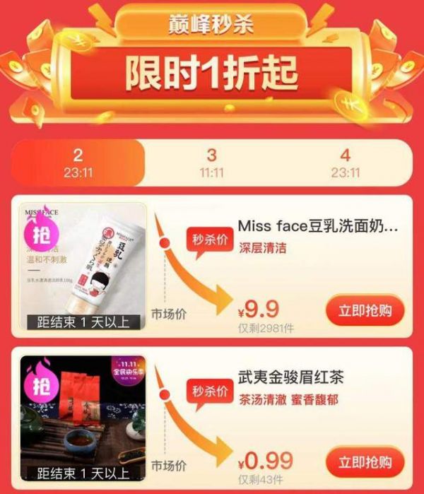 双11的正确打开方式除了查攻略、比价格、囤爆款以外,还需要拼手速,毕竟面对物美价廉的爆品,可能一眨眼的功夫就被大家抢完了。“真快乐”APP在双11大促期间,就为大家开启了巅峰秒杀活动,限时1折起,让消费者享受到实实在在的福利。巅峰秒杀爆品包括Miss face豆乳洗面奶、武夷金骏眉红茶、华帝股份百得家用厨房燃气灶、品珍鲜活海鲈鱼、国美自营汾酒53度……秒杀价都非常诱人。温馨提醒,激情开抢时可千万别手抖哟! https://gome.cn/EH56B