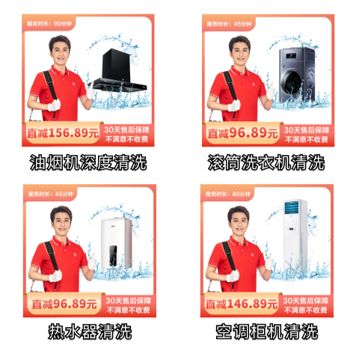 十分到家的家电清洗服务涵盖:空调、冰箱、油烟机、热水器、燃气灶等全屋家电品类。