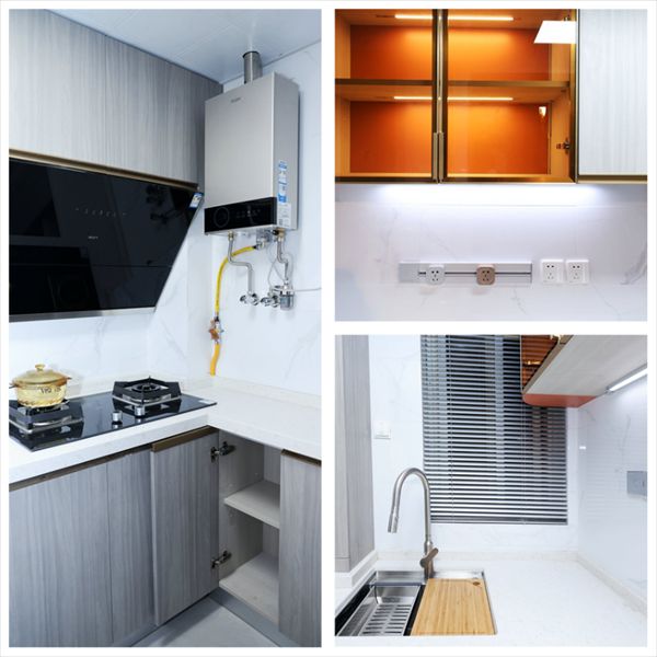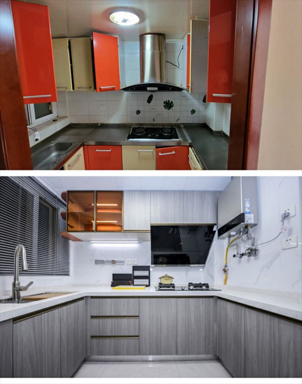 改造后的厨房给冯女士带来了惊喜,让她直呼“不敢认”。在焕然一新的厨房里,冯女士提出的各项要求也一一得以兑现。例如安装的橱柜智能感应灯,可以避免操作时出现“灯下黑”。台面根据业主烹饪习惯进行动线设计,下厨时不用弯腰低头,更加舒适。可以灵活移动的轨道插座,使抽插厨房电器更安全自由;根据需求定制的橱柜便于科学收纳,厨卫挂件体现出整洁美观;抗菌砧板、垃圾处理器等厨房用品,让厨房卫生“不留死角”,守护全家人健康。冯女士也因此选择尚品宅配进行了全屋整装翻新改造。