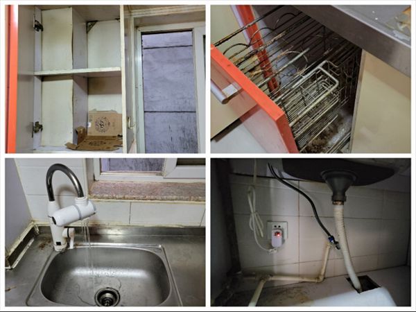 据冯女士介绍,改造前的老厨房,不仅使用不便,还潜藏着各种安全隐患:水管线管管道老化、台面和拉篮生锈、墙转地砖部分掉落、水龙头漏水、橱柜受潮变形无法使用……在这样的厨房里做饭,每顿饭都像一场“煎熬”,而冯女士一家将就着用了十多年。“下班回家,还要在这样的厨房做饭,心情都变差了”,冯女士最大的心愿就是有一个安全便捷舒适的餐厨环境。