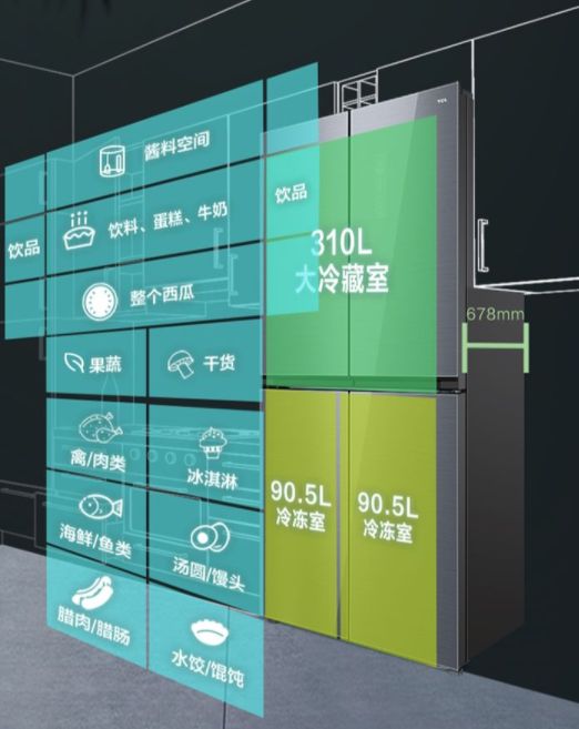 举个简单的例子,当代年轻人的冰箱里不仅有果蔬、冻肉这种日常食材,还可能出现三文鱼、燕窝、鹅肝,甚至是香水、面膜、红酒。这么多品类的物品不能一股脑地放进冰箱里,如果没有容积很大的冰箱,这些问题就难以解决。而TCL的R650T1-S、BCD-520WPJD、R491P8-U等冰箱除了拥有大容量,其冰箱内部还采用多门多间室设计,实现食材、物品分门别类精细分储;干湿分类储存,还有可以用来存储美妆用品、红酒的区域。最大程度满足年轻人多元化的储鲜、储藏需求,为年轻用户带来充分解决精致需求并大幅提升使用愉悦度的产品。
