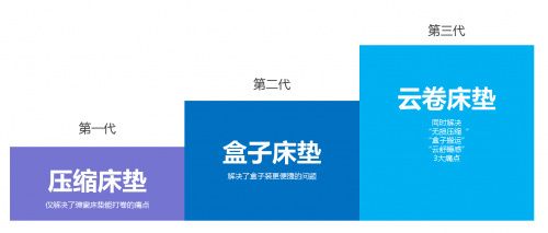 第一代压缩床垫仅仅是解决了“弹簧床垫能压缩”的痛点,第二代压缩床垫“盒子床垫”解决了包装形状的问题;但他们都没有从根本上在床垫睡感和舒适度上面有质的提升。国外的Casper以及国内一大批Casper品牌的模仿者,都没有解决“睡感偏软”、“溜边”、“不太适合中国人睡感”的产品痛点。Bedstory眠里故事研发创新的云卷床垫采用钢琴键式科技弹簧,通过5万次无损压缩测试,保证产品品质,提出质保50年的品质承诺。同时将床垫装进一个便携的盒子里,为新生代年轻人搬运提供了极大的便利。为了云卷床垫睡感更适合中国人,特别针对上海、广州、深圳、杭州、苏州、成都、东莞、佛山等多个一线与新一线城市进行用户调研与数据分析,结合Bedstory眠里故事7层护腰与不溜边加固等多项技术,打造出适合新生代年轻人使用的云卷床垫,为他们打造新睡感体验。