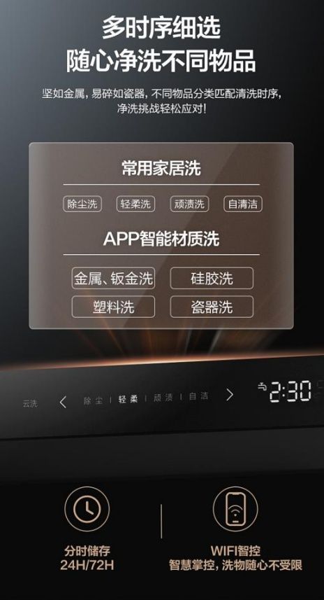 不同于市场上其他的传统清洗机,美的T3专业级洗物机整采用智能定制洗功能,一键开启,随物而定,对居家硬物进行分类分效清洁,如金属钣金洗、硅胶洗、塑料洗、瓷器洗,实现家居的清洁进化。父母总是闲不住,想要收拾清洗却总是累弯了腰?只需下载美的美居APP,即可开启智能云洗涤模式,随时随地随心远程操控,帮助父母调好程序,简化家居模式。