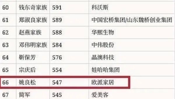 新浪家居定制频道讯 11月4日,福布斯发布年度中国内地富豪榜。榜单显示,农夫山泉创始人钟睒睒以4244亿的财富值问鼎2021年中国内地富豪榜榜首,字节跳动创始人张一鸣位居榜单第二,宁德时代董事长曾毓群位居第三,腾讯CEO马化腾位居榜单第四,阿里巴巴创始人马云位居第五。欧派家居董事长姚良松以547亿元的财富位居榜单第66位,成为家居首富。