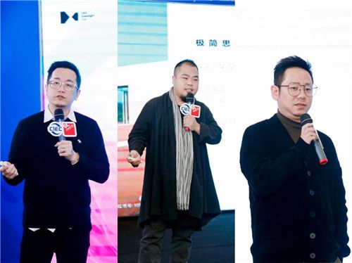 活动现场,IXI 设计集团、隐上设计品牌创办人黄士华,埂上设计联合创办人黄圆满与武汉得间设计创始人/执行总监李锋分别发表了《造梦空间》、《后疫情时代下的网红酒店》、