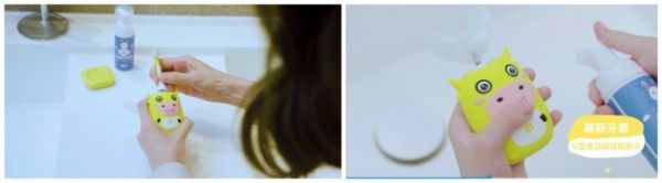 U型刷头柔软硅胶材质同时满足巴氏刷法能进行360°深度清洁,保护孩子的牙齿健康。