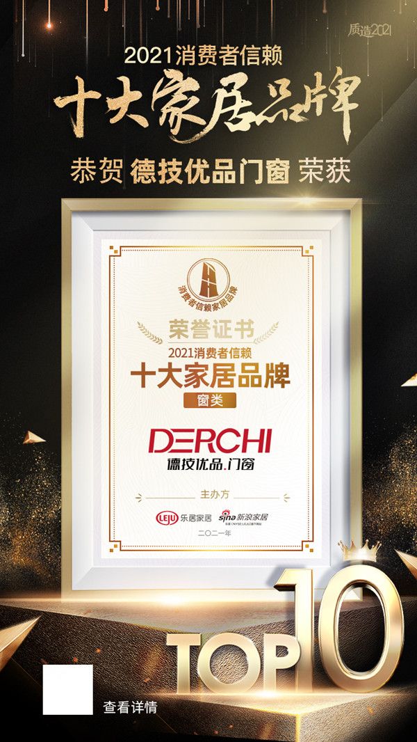 门窗快讯 | 重磅!德技优品门窗荣膺「2021消费者信赖十大窗类品牌」
