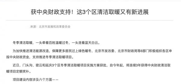 家电快讯| 北京3个区清洁取暖项目实施方案获批