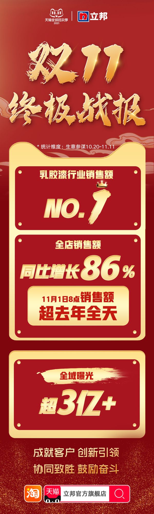 快讯|立邦天猫双十一终极战报,乳胶漆品类销售额No.1