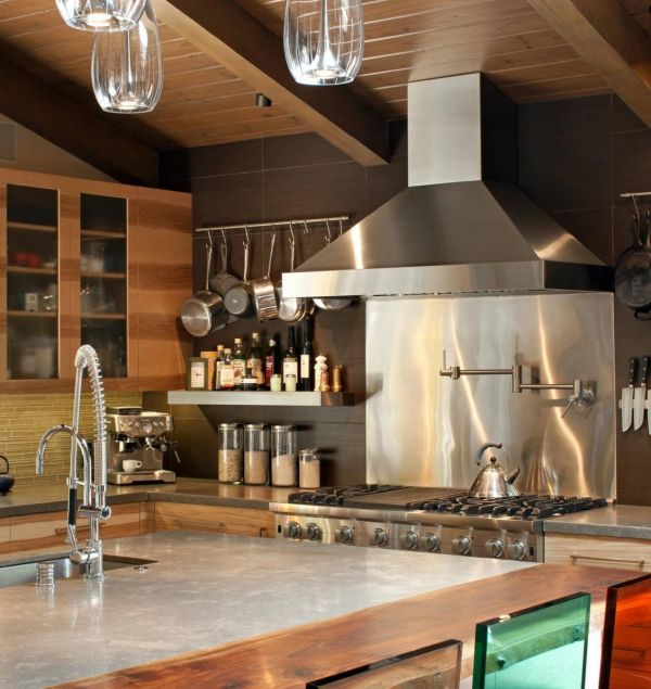 灶台后面的墙面在沾染上油污后,如果没有及时清理就会很难清洁,我们可以在灶台后方处单独设立一块不锈钢板,清洗的时候将它拆下来就行了,非常方便。