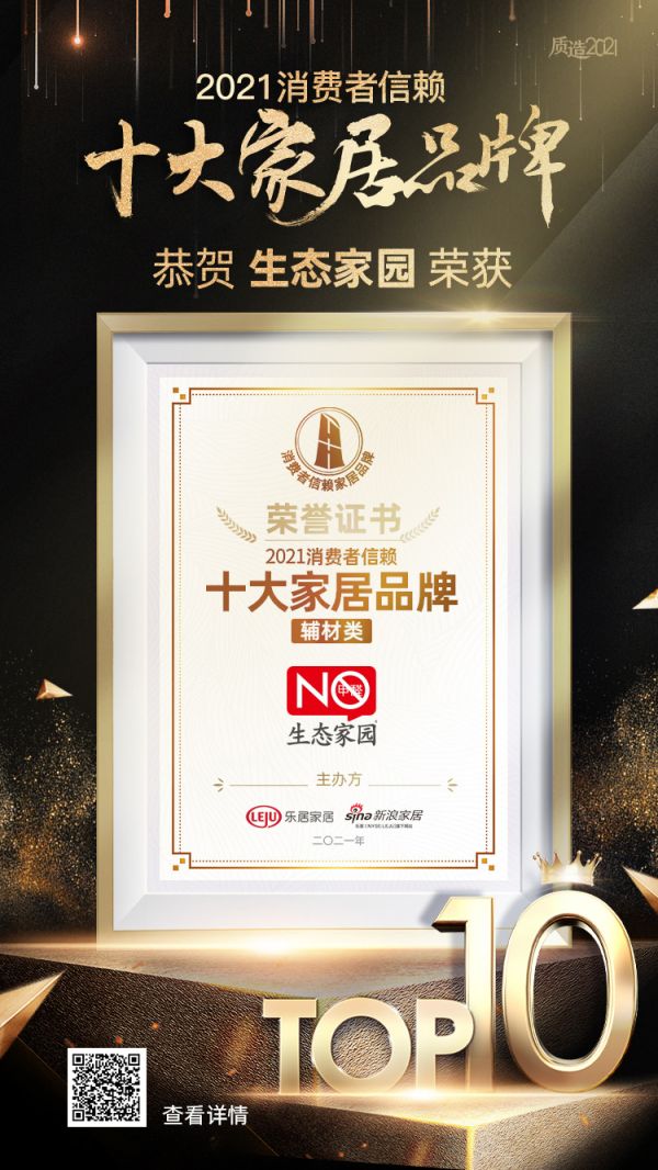 重磅!生态家园荣膺「2021消费者信赖十大辅材品牌」