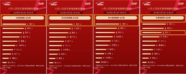 在充足的准备下,各大家电品牌也在这个11.11创下佳绩,在这场年度盛会中充分展现了品牌实力。以海尔为例,京东11.11期间,海尔不仅登上电视、空调、冰箱、洗衣机、热水器、洗碗机在内的多个榜单,更是以强劲实力始终稳坐最能反映国内外品牌厂商综合实力的“全品类家电销售额排行榜”王座。在京东家电11.11开启之初,海尔智家京东负责人张悦鹏就曾表示:“今年京东11.11提前到晚8点开启,这种不熬夜买家电的模式所引发的消费爆发力十分强劲,我们全品类的商品销售情况均超往年11.11。相信11月11日我们还将迎来新一轮的销售高峰。”而这一期盼也在京东家电11.11巅峰日完美实现,据京东家电统计数据显示,11月10日晚8点巅峰开启4小时内,海尔冰箱、海信电视、华为智慧屏、LG等超过100个品牌成交额超去年11月11日全天,再次迎来品牌增长新高峰。