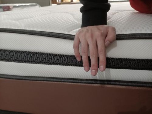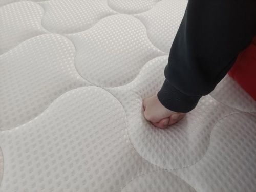 我买的是A款,里面用了3E椰维康和整网弹簧。用手按压下去,可以看到床垫凹下去的程度很小,支撑力很强,睡感偏硬。