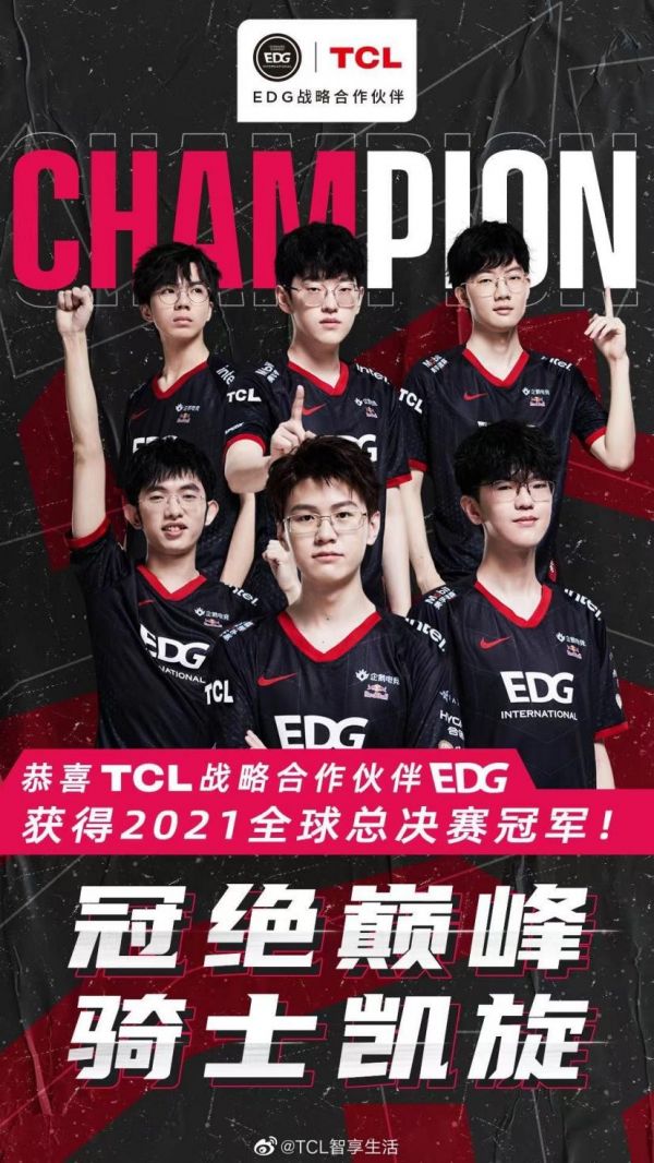 2021英雄联盟全球总决赛圆满结束,EDG拿到了世界冠军。作为EDG的战略合作伙伴,TCL 的成长历程和EDG有着许多相似之处,TCL从1981年品牌诞生到如今业务遍及全球160多个国家和地区,每走一步都要在不断创新中脱颖而出,最终成为全球第一的中国品牌。