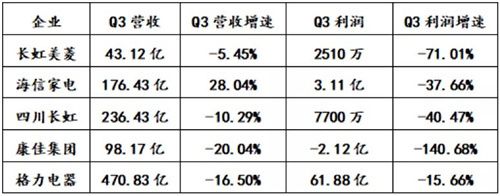 比如长虹美菱、海信、四川长虹、康佳等利润均大幅下滑,甚至连格力电器第三季度出现了营收净利双降超15%。