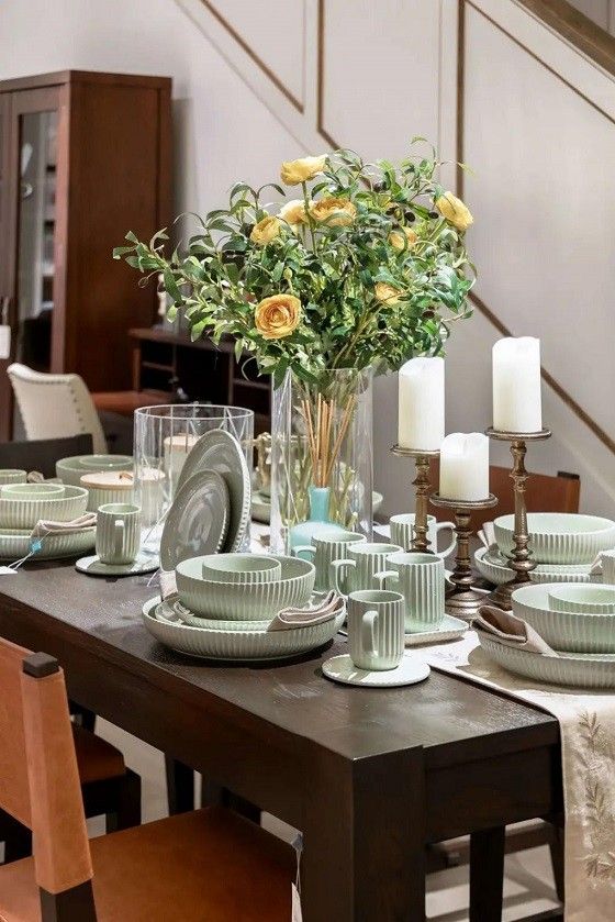 不论是餐桌上的餐具、花瓶、装饰花,墙上的装饰画、挂钟,客厅搭配中的靠包、灯具,目之所有的一切,您都能直接在店里Get同款。