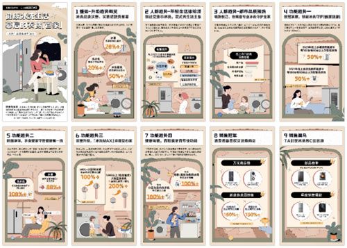 此次活动,天猫健康冰洗超级品类日围绕“衣食当道,冰洗健康”的核心心智,以#升级你的冰洗新巢流#、#当冰洗学会凡尔晒#为话题,为消费者带来一场冰箱洗衣机的活动盛宴。利用平台优势及优质话题内容,吸引消费者关注。由KOL及KOC构建内容传播矩阵,以更贴近消费者真实生活的话术内容,多维度强势曝光产品信息。运用趣味话题,吸引消费者自发进行内容反哺,引发消费共鸣,提升KA品牌与产品口碑沉淀的同时预埋消费动机。